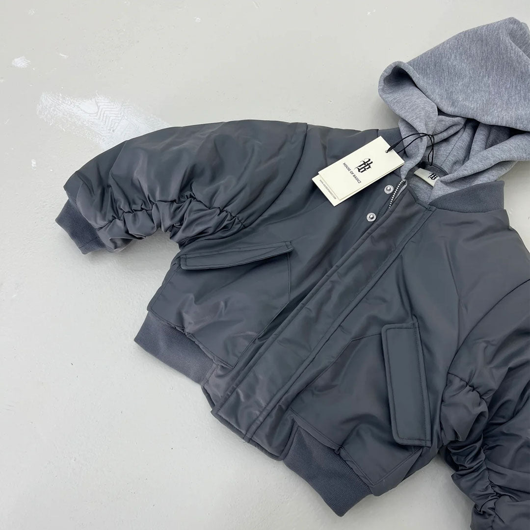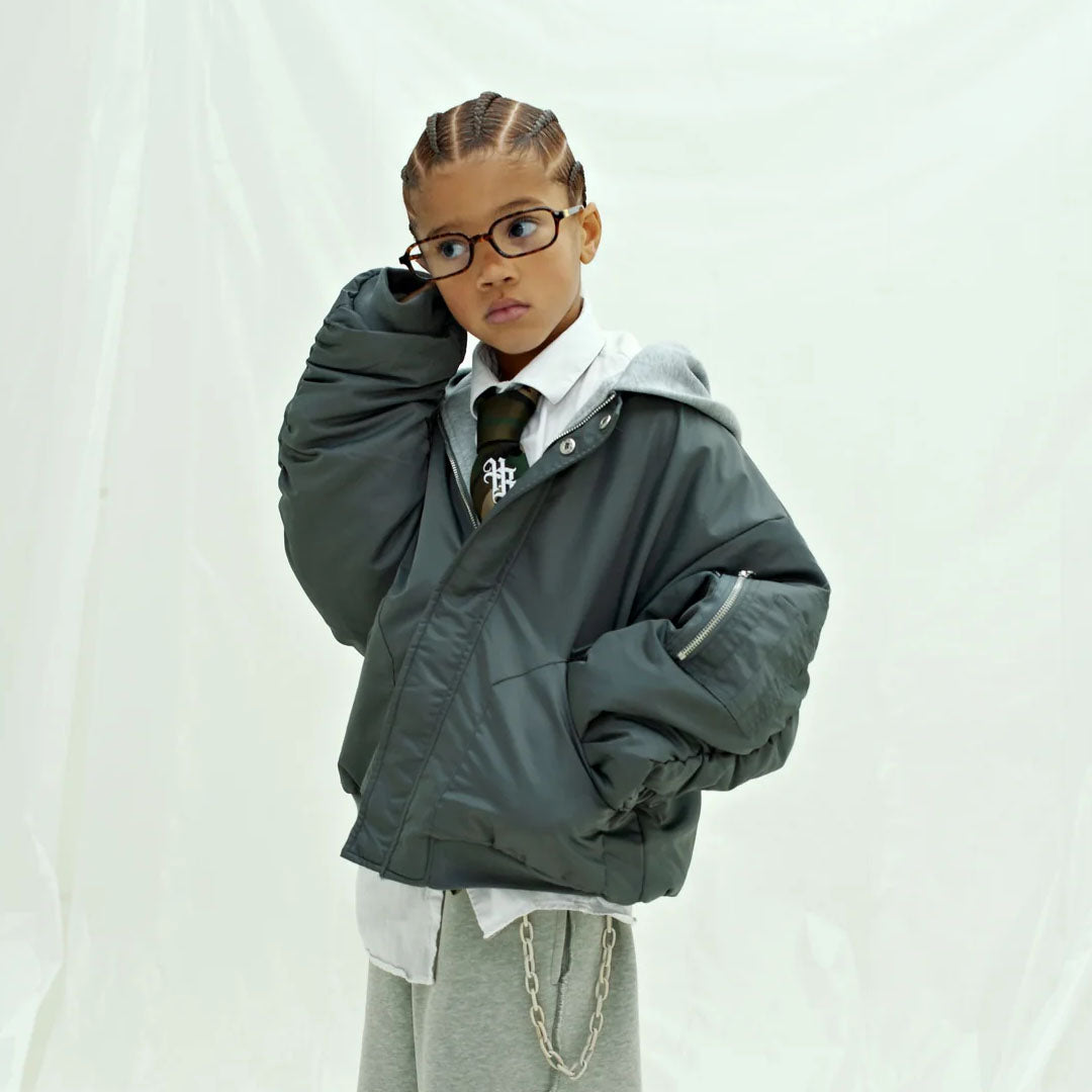 Two looks. One jacket. Endless rotation. This grey reversible bomber from House of Basicz delivers serious versatility for kids who like to switch it up. One side keeps it clean in a refined grey marble tone, while the reverse brings bold street detail with raw finishes that stay true to the House of Basicz identity.