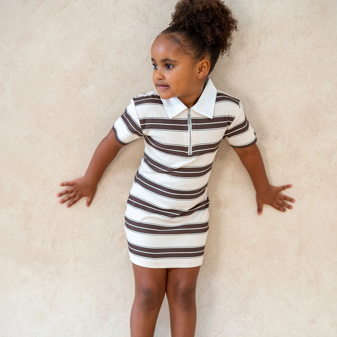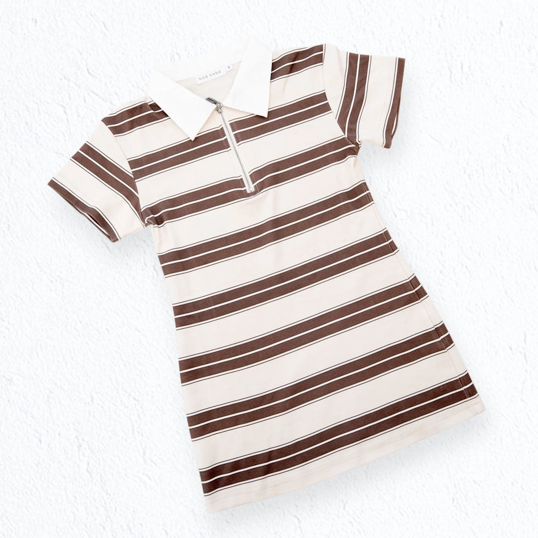 Sassy Girl Polo Dress - Chocolate / Oat Stripe
