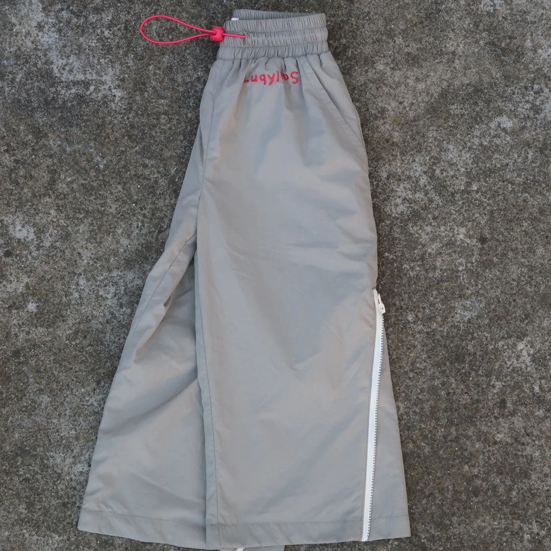 These windbreaker pants are made from durable polyamide with a soft cotton blend lining, giving kids lightweight comfort they can wear all day. The relaxed fit and elastic drawstring waist make them easy to throw on, while zip details on each leg allow you to adjust the look and fit.