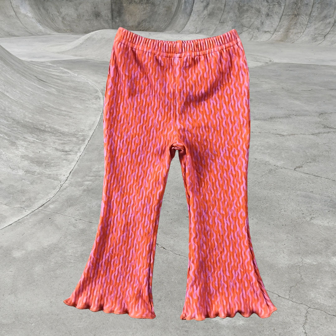 Soft, stretchy and made to move — these ribbed flares are built for slow mornings that turn into full-on chaos. Featuring an easy pull-on elastic waistband and a relaxed flared leg, they’re the kind of pants kids live in. The subtle flame print brings just the right amount of attitude while still keeping it playful and easy to wear.