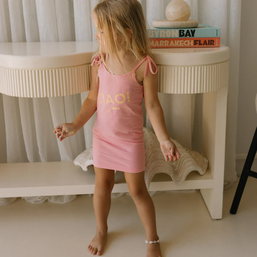Say ciao to effortless summer style 🌞 The Ciao Mini Dress is crafted from a super-soft cotton jersey blend (95% cotton, 5% spandex) with the perfect amount of stretch for all-day comfort. Inspired by sunny Italian adventures and the simple joy of saying “ciao,” this dress is made for little trendsetters on the move.