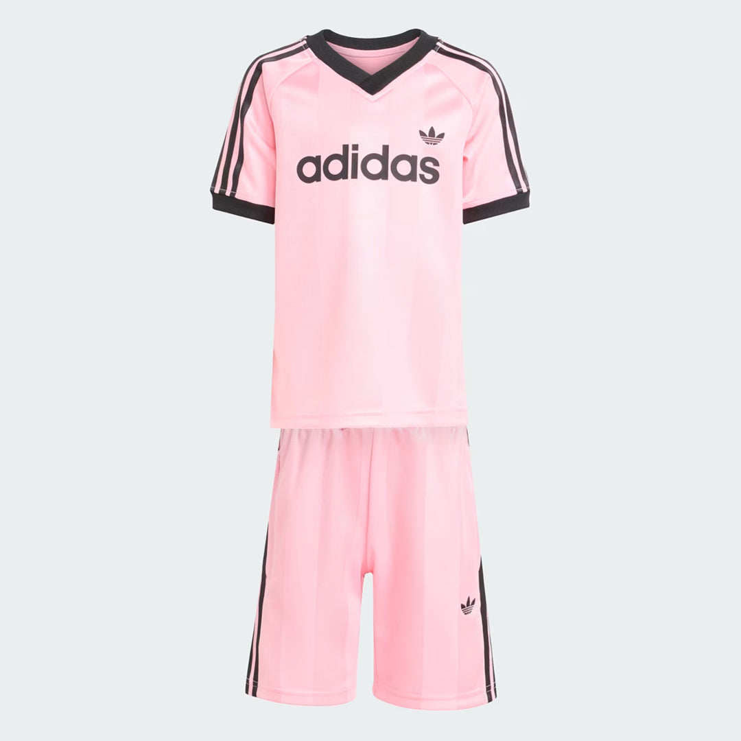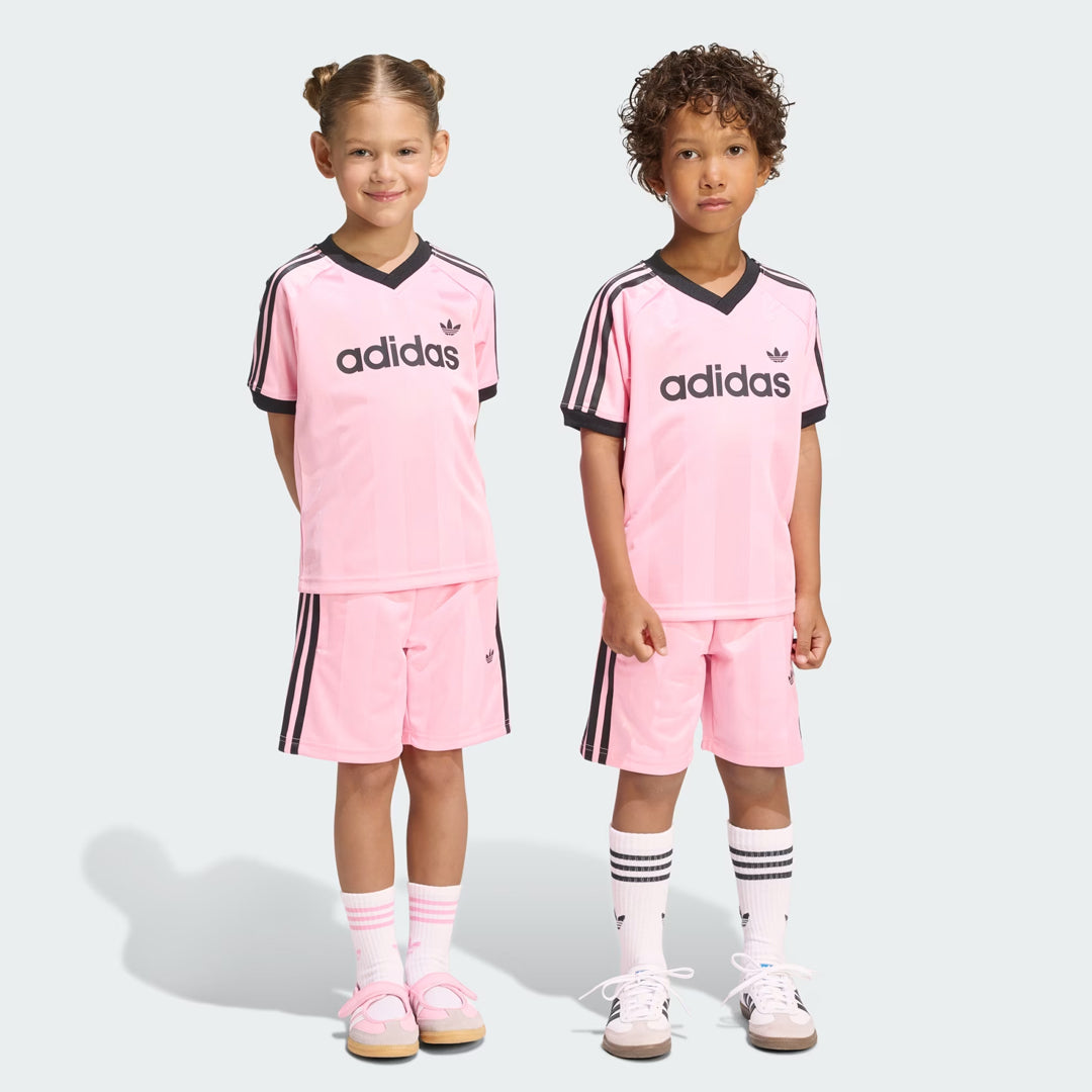 Designed for youth who are always on the move, the adidas Jersey Short Tee Set blends sporty style with everyday comfort. Part of the Adicolor collection, this versatile two-piece set celebrates adidas heritage while delivering a modern, easy-wear look for older kids. Crafted from soft doubleknit fabric made with 100% recycled polyester, the regular-fit tee allows for comfortable movement throughout the day. The V-neck adds a subtle sporty edge, while the matching shorts feature a drawcord waist for a secure and adjustable fit — ideal for school, sport, and weekend wear.